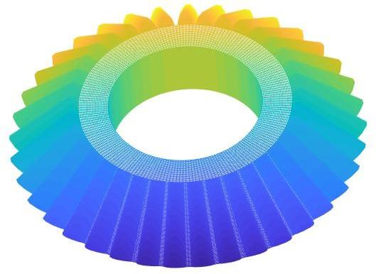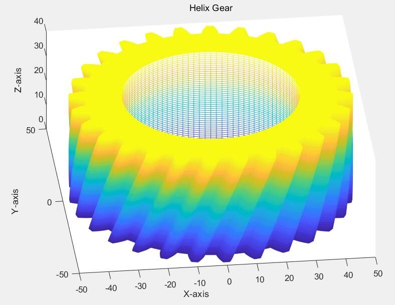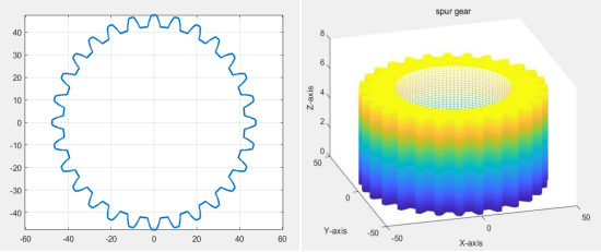 The first step is to draw all the teeth with a base circle on 2D plane at first, then find out the curve function along the z-axis and the relationship functions between the three directions, finally use proper ‘for’ loop codes to finish the gear model drawing.