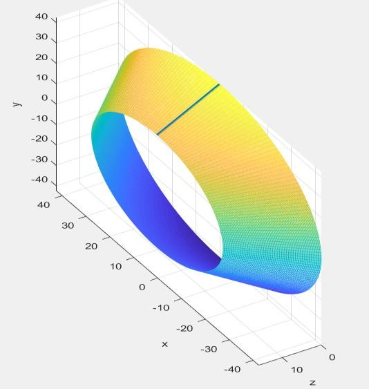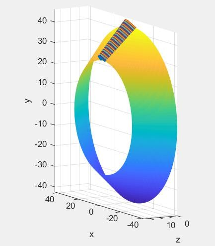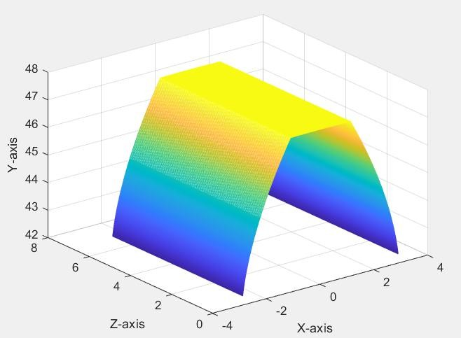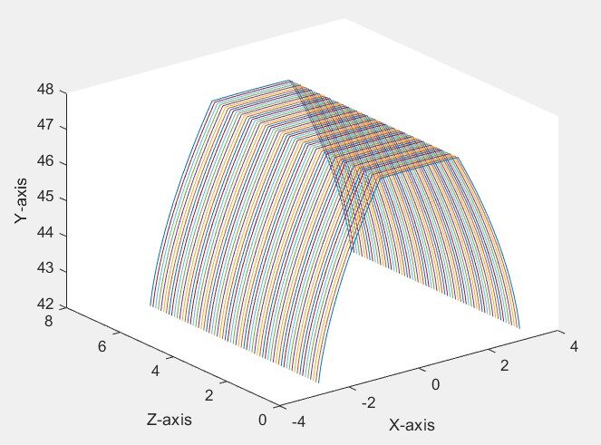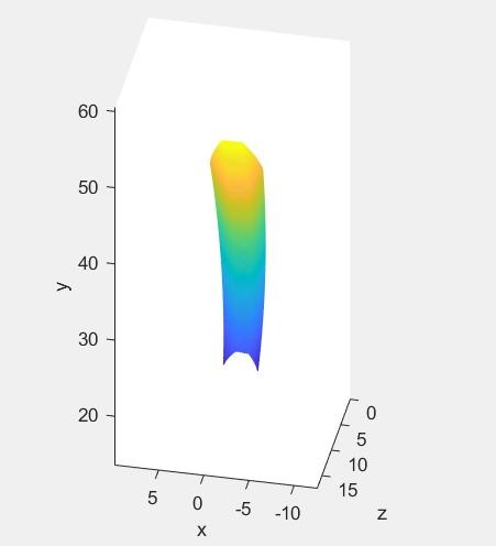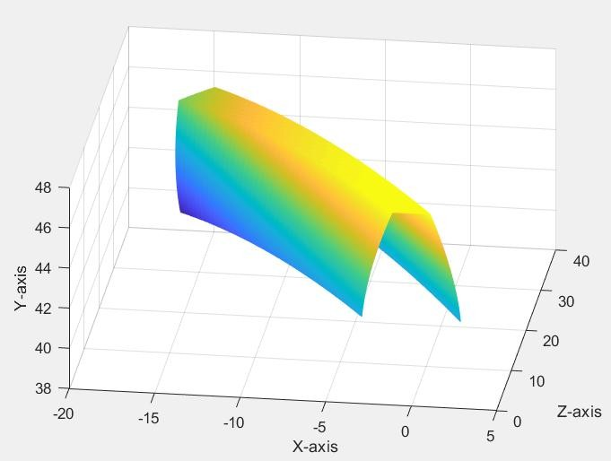 From aesthetic point of view, it would be more visible and clear to plot the tooth as shown in figure (2-4). The mesh 3D model can be plotted by using a mesh function in MATLAB. More specifically the way to mesh the tooth is adding an another loop indicator j to save all the coordinates and then mesh them: