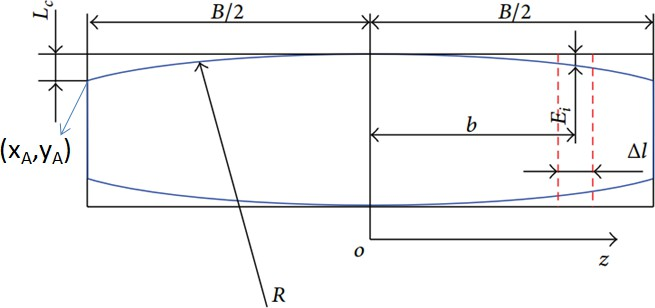 Tooth lead crown is an another common used tooth modification method, this method is to change the curve along the face width as shown in the figure 3-10, Lc is the controlled parameter called the ‘amplitude of the lead relief’ which decides the curvature of the modified face width curve. Here assume the controlled parameter Lc equals to 0.2mm as an example.