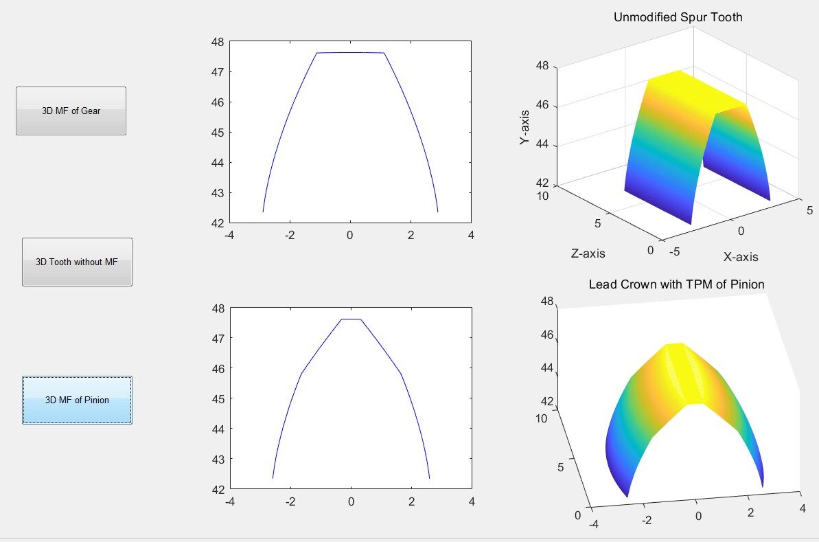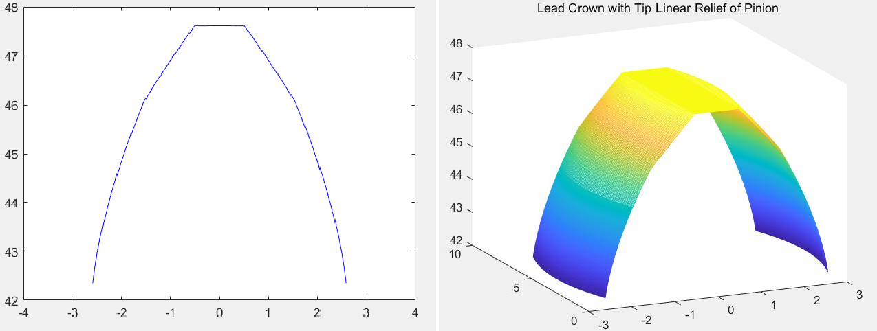 Apart from doing the tooth profile modification and tooth lead crown relief modification independently, TPM and tooth lead crown relief can be combined together. The combination procedure is quite easy which is just to combine the two parts codes together, the only thing that should be noticed is that TPM should be done first.