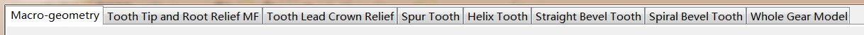 At the beginning users should click the ‘Macro-geometry’ tab to set the basic parameters of gear, such as number of teeth, modulus, face width, etc—— which decide the size and shape of gears and pinions.