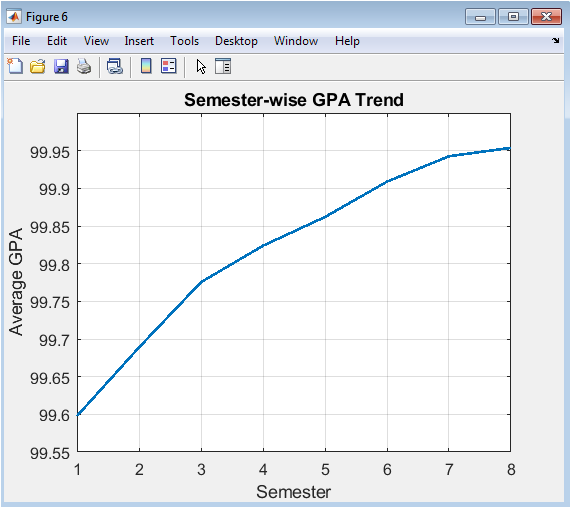 The final phase of the system synthesizes all analytical outputs into an accessible, actionable format. It aggregates key results such as overall averages, risk cohort sizes, and prediction accuracy into a concise summary report. Most importantly, it automates the generation of ten distinct, publication-quality visualizations [15]. These plots include histograms of grade distributions, scatter plots of correlations, Pareto charts of variance explanation from PCA, trends of average GPA over time, and visual representations of student clusters. These figures serve to translate complex numerical findings into intuitive graphical insights, facilitating comprehension for stakeholders at all technical levels. In conclusion, this integrated MATLAB-based framework demonstrates a complete pipeline from synthetic data generation through multifaceted analysis to clear visualization [16]. It stands as a proof-of-concept for a new class of academic management tools that are predictive, probabilistic, and strategic, ultimately aiming to empower educators with the data-driven insights necessary to enhance student support and institutional effectiveness.