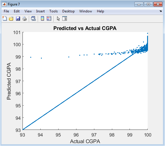 After constructing the predictive regression model, the system enters a crucial validation and diagnostic phase to assess the model’s reliability and limitations. The goodness-of-fit is primarily evaluated by comparing the predicted CGPA values against the actual synthetic CGPA, often visualized on a scatter plot with a reference identity line. Residuals (the differences between actual and predicted values) are analyzed to check for patterns that would violate regression assumptions, such as heteroscedasticity or non-linearity [21]. While the synthetic environment ensures known relationships, this step establishes the diagnostic pipeline necessary for real-world application. It also calculates standard metrics like R-squared to quantify the proportion of variance in CGPA explained by the input features. This process validates the predictive power of the selected variables and highlights potential areas where the model may require refinement, such as the inclusion of interaction terms or non-linear transforms for real-world data with more complex dynamics [22].