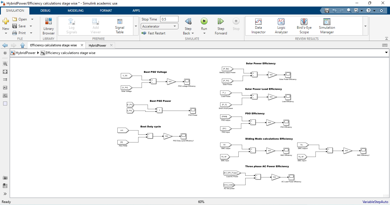 - Figure 7: PSO optimization of PV, Power calculations and combined control battery super capacitor BMS blocks