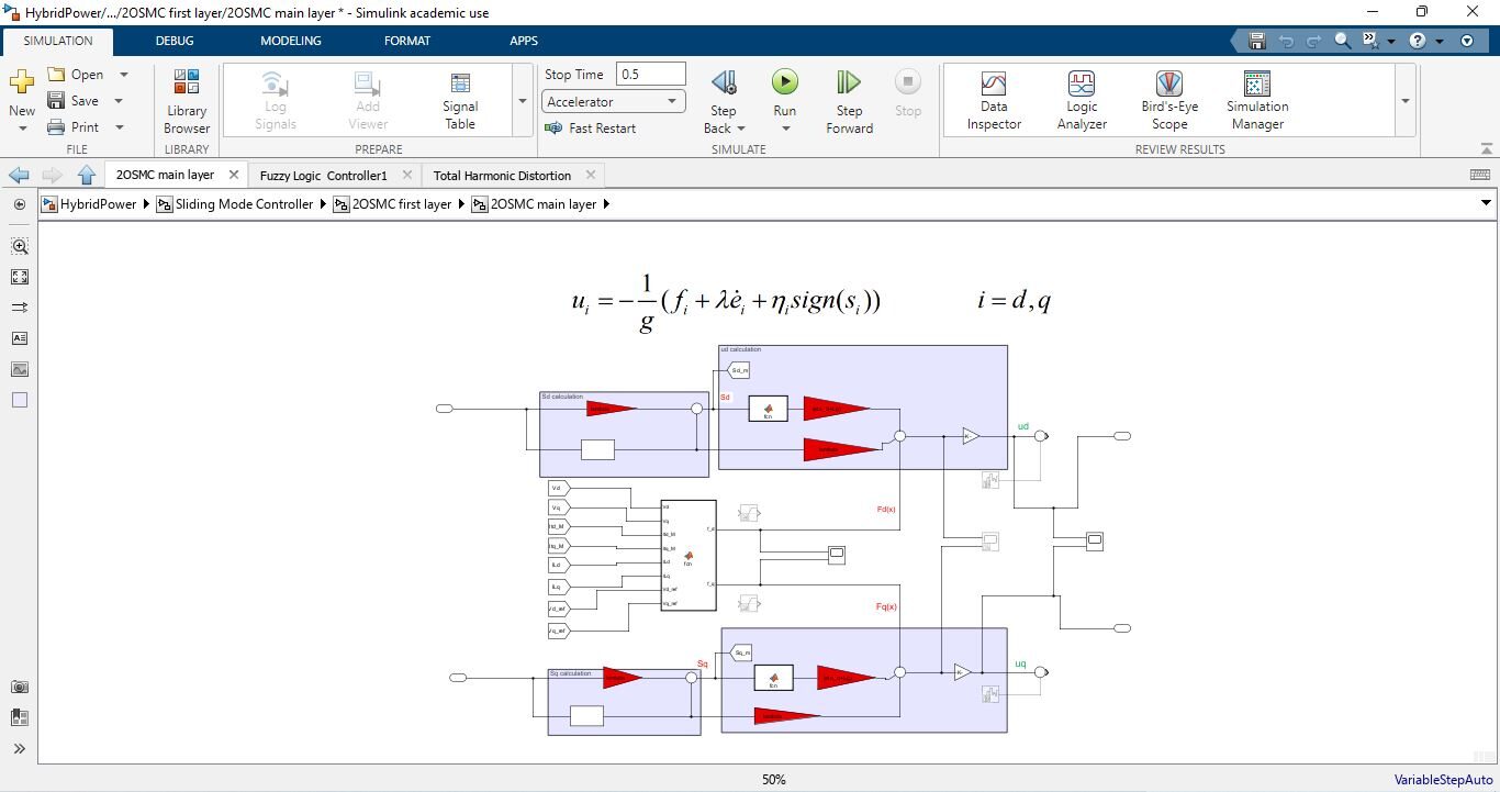 In conclusion, the development and evaluation of the hierarchical control model for hybrid power systems represent a significant advancement in the field of renewable energy integration and control engineering. Through rigorous system modeling, algorithm design, and simulation-based testing, we have demonstrated the effectiveness of the proposed control framework in optimizing system performance, enhancing power efficiency, and improving overall power quality. The integration of Sliding Mode Controllers (SMCs), Particle Swarm Optimization (PSO), and Artificial Intelligence (AI) controllers has provided a robust and adaptive control solution capable of managing diverse operating conditions and dynamic system configurations.