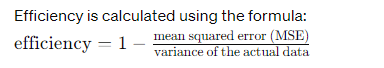 - Positive Efficiency: Indicates that the model predictions are better than simply predicting the mean of the actual data. The closer the efficiency is to 1, the better the model.