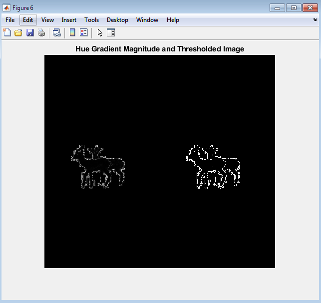 Figure 8 : Gradient magnitude and thresholded image for the hue channel.