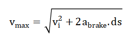 In the backward pass, braking constraints are enforced to guarantee that the vehicle can decelerate sufficiently before entering tighter curvature regions. This condition is defined as [39]