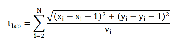 This expression provides the ultimate performance metric of the framework, quantifying how geometric optimization and dynamic constraints combine to minimize total lap duration.
