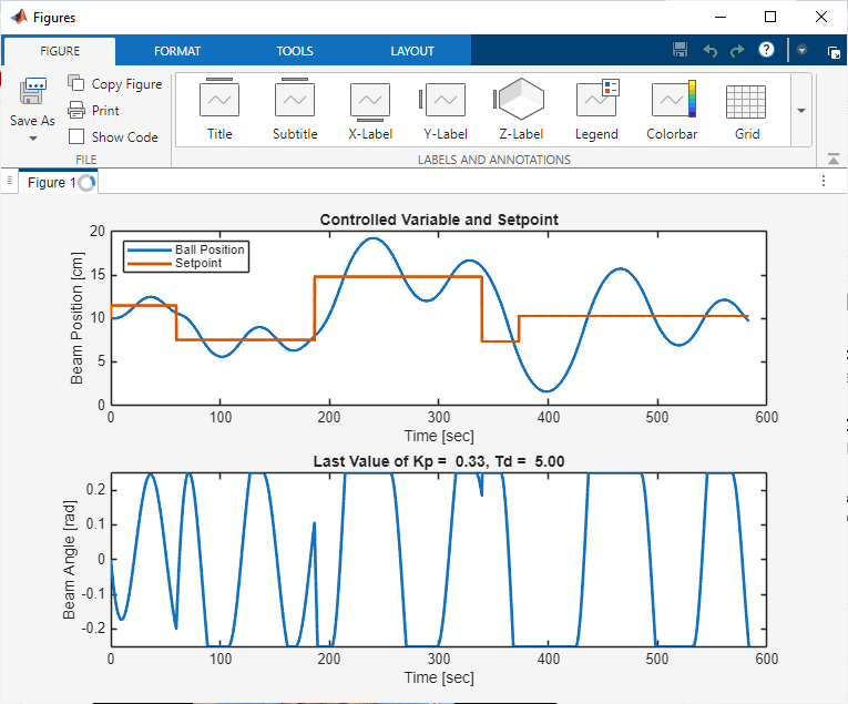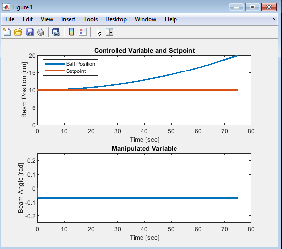 - Control Strategy: The simulation implements a control strategy, such as PID control, to regulate the ball’s position. The control strategy calculates the control input (beam angle) based on the error. The PID gains are tuned to achieve a desired response.
