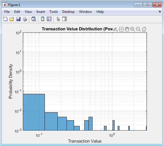 This model captures the heavy-tailed transaction value distribution through a power-law generation process, ensuring statistical realism for analysis.