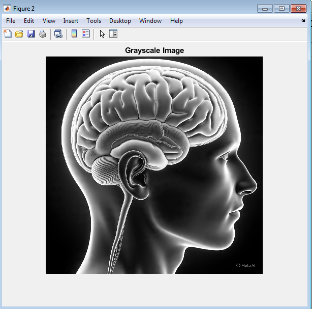 - gray_img = rgb2gray(img);: This line converts the color MRI image to grayscale using the rgb2gray function.