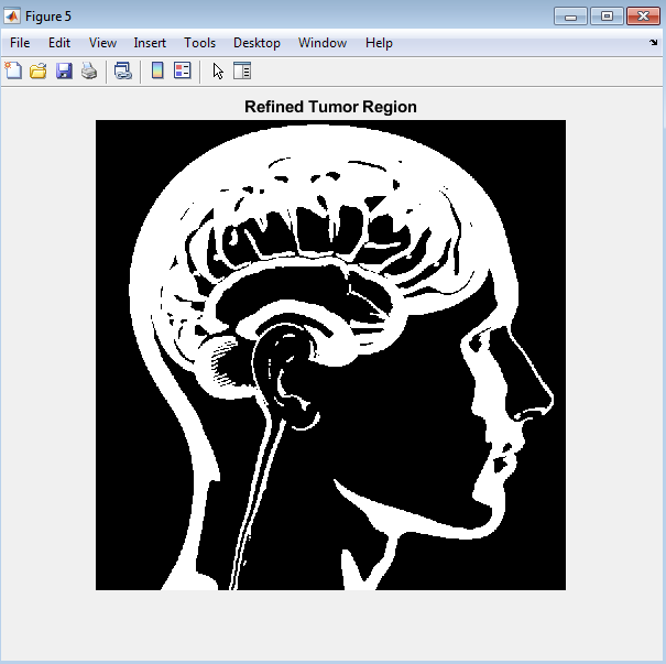 The MATLAB code implements a brain tumor detection algorithm using digital image processing techniques. It begins by loading an MRI image and converting it to grayscale. A Gaussian filter is applied to reduce noise in the image, followed by thresholding to segment the tumor region from the surrounding brain tissue. MRI-based medical image analysis has been widely used for brain tumor studies [6], providing valuable information for diagnosis, treatment planning, and patient care Morphological operations, including erosion and dilation, are then used to refine the tumor region. Finally, Canny edge detection is applied to identify the tumor boundaries. Texture and shape features extracted from MRI images can be used to classify brain tumors [7], providing valuable information for diagnosis and treatment planning. The code uses various MATLAB functions, such as imread for image loading, imgaussfilt for Gaussian filtering, imbinarize for thresholding, imerode and imdilate for morphological operations, and edge for Canny edge detection. The resulting images are displayed using imshow, allowing for visual inspection of the tumor detection process. By leveraging MATLAB’s image processing capabilities, the code provides a robust and efficient method for detecting brain tumors in MRI images.