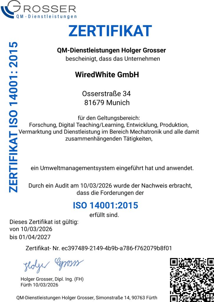 Confirming that WiredWhite has introduced and is implementing an Environmental Management System.