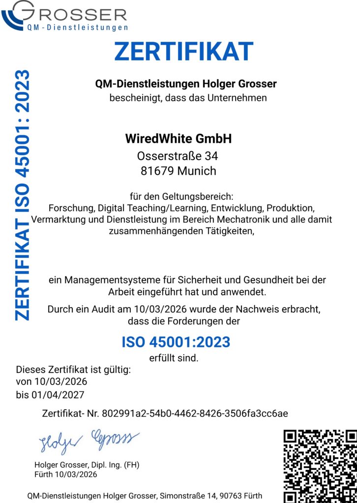 Confirming that WiredWhite has introduced and is implementing a Quality Management System.