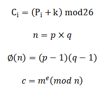 The Caesar cipher is defined by the modular shift While RSA relies on number theory with and the encryption.