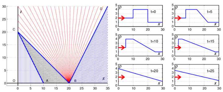 The Lighthill–Whitham–Richards (LWR) model describes the spatiotemporal evolution of traffic using a nonlinear hyperbolic conservation law: