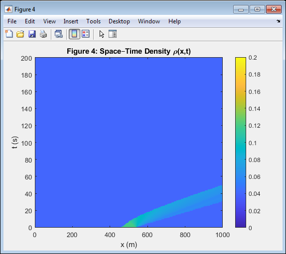 - Figure 6: Space–Time Density Distribution ((x,t)).