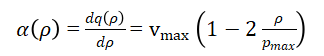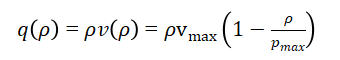 This equation expresses the (conservation of vehicles) vehicles neither appear nor disappear within the domain. The flux q(ρ) depends on the local traffic density through an empirical or theoretical relation known as the fundamental diagram. In this article, the Green shields model is adopted, which defines the relationship between velocity v(ρ) and density (ρ) as: