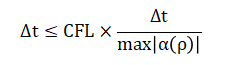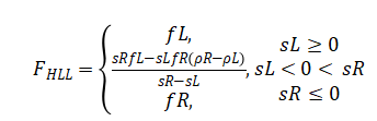 Where, (sL) and (sR) are the left and right wave speeds, and (fL, fR) are fluxes computed from the reconstructed densities. The Courant–Friedrichs–Lewy (CFL) condition governs the time-step stability as: