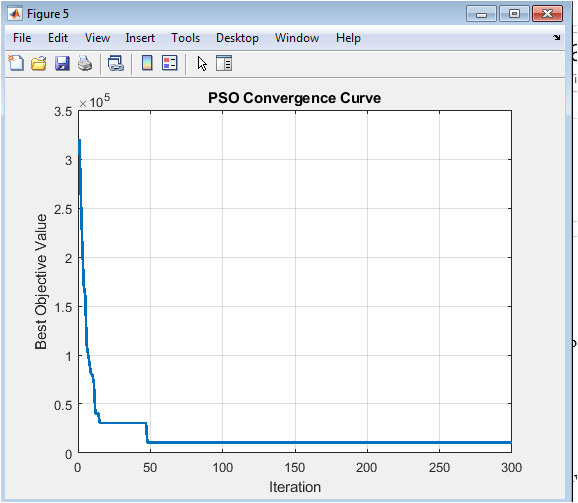 This figure shows the convergence curve of the PSO algorithm, representing the best objective value at each iteration. The plot demonstrates the effectiveness of the PSO algorithm in optimizing the paths of the robots. The convergence curve is a useful tool for evaluating the performance of the PSO algorithm. The plot shows a steady decrease in the objective value, indicating the convergence of the algorithm. The plot is a useful tool for understanding the optimization process. The convergence curve is a key indicator of the PSO algorithm’s performance. The plot provides a clear visualization of the optimization process. The legend provides a clear description of the plot elements. The plot is a useful tool for evaluating the performance of the PSO algorithm.