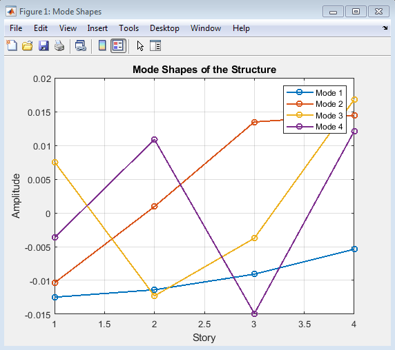 - Figure 3: Mode Shapes of the 4-Story Structure.