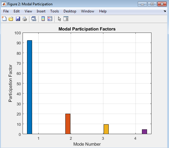 Above figure illustrates the modal participation factors for each mode, which indicate the contribution of each mode to the overall response of the structure. The modal participation factors are calculated using the mass matrix and mode shapes. The figure shows the absolute values of the participation factors, highlighting the dominant modes in the response. The modal participation factors provide valuable information about the dynamic behavior of the structure and are used to truncate the number of modes in the analysis. By analyzing the participation factors, engineers can identify the most significant modes and optimize the structure’s design. This figure helps to understand the relative importance of each mode in the structure’s response. The participation factors are essential in determining the structure’s dynamic behavior. The figure provides a clear visualization of the modal participation factors.