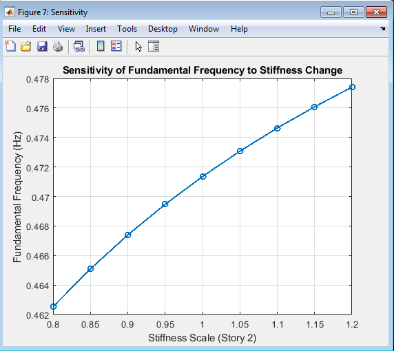 - Figure 9: Sensitivity of Fundamental Frequency to Stiffness Change.