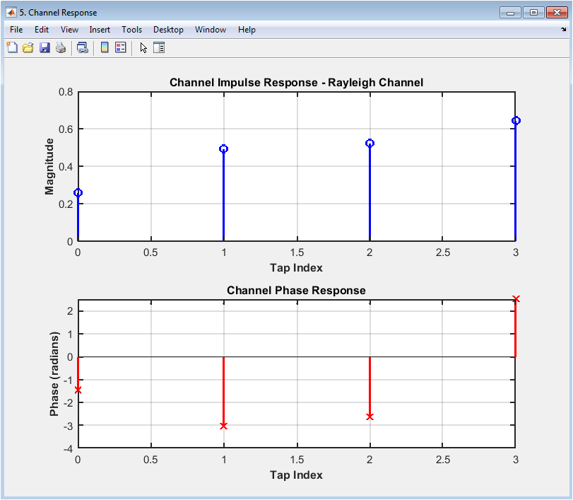 The channel impulse response (CIR) plot shows the impulse response of the channel, with the time on the x-axis and the amplitude on the y-axis. The plot displays the CIR of the Rayleigh channel, with the magnitude and phase responses shown separately. The CIR plot provides insight into the channel characteristics, including the delay spread and fading. In this case, the CIR plot shows a moderate delay spread and fading for the Rayleigh channel. The plot helps to evaluate the effects of the channel on the received signal and diagnose issues with the system. The CIR plot is particularly useful for evaluating the effects of channel impairments and equalization techniques on the received signal. The diagram can be used to optimize the system parameters, such as the equalizer coefficients, to improve the performance. The CIR plot is a valuable tool for communication system designers and researchers.