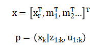 The Extended Kalman Filter approximates this posterior as a Gaussian, by linearizing the nonlinear motion model and observation model around the current state estimate.