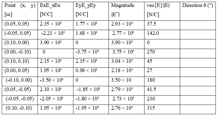 Table 2 : Electric Field Distribution for Multi-Charge System
