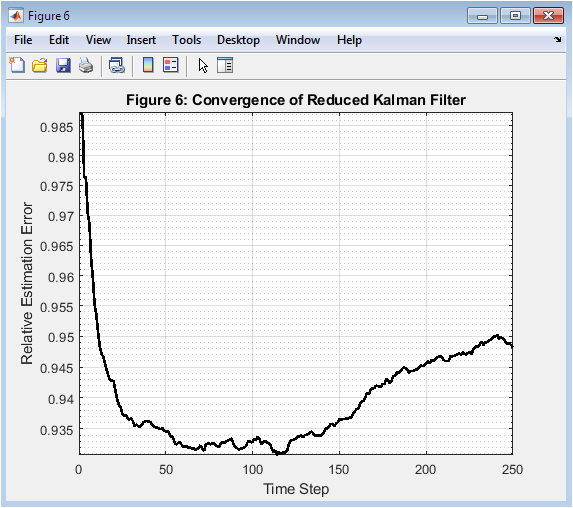Once the reduced basis is constructed, the high-dimensional state is projected into the reduced subspace. The Kalman filter operates within this compact representation to perform recursive state estimation. Prediction and update steps are computed using reduced matrices, significantly lowering computational burden. Process noise covariance and measurement noise covariance are incorporated to handle uncertainties [17]. Sensor measurements are mapped into the reduced space using observation matrices derived from the basis functions. The Kalman gain optimally balances model predictions and noisy observations. This recursive structure allows real-time state correction as new data arrives. Reduced-order filtering ensures scalability for large environmental domains. Estimation error metrics are used to monitor convergence performance. This framework enables accurate reconstruction even under sparse sensing conditions.