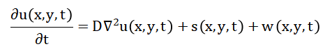 Where (D) is the diffusion coefficient, (s(x, y, t)) is the source term, and (w(x, y, t)) represents process noise. After spatial discretization, the system is written in state-space form as [32]: