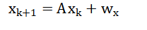 - A: State transition matrix (discrete system dynamics)