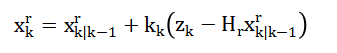 - (zk−Hrxk∣k−1r): Innovation (measurement residual)