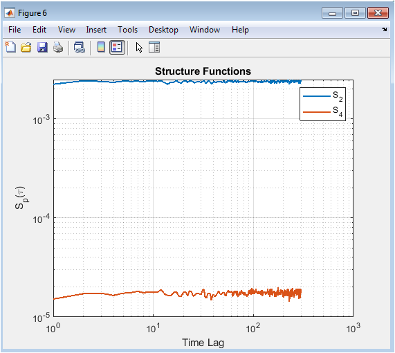 Time Lag, τ | S2(τ) | S4(τ) | Intermittency (S4/S2^2) |