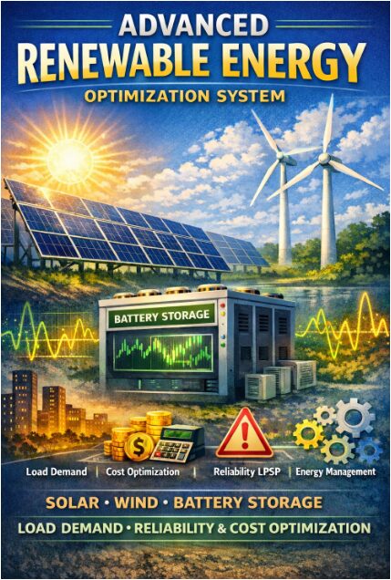 Solar photovoltaic (PV) and wind energy represent two of the most abundant and technologically mature renewable resources available [4]. However, their inherent intermittency and variability pose significant challenges to maintaining a stable and reliable power supply [5] To address these issues, the integration of energy storage systems particularly battery energy storage has become essential for smoothing generation profiles and ensuring continuous power delivery. This synergy forms the basis of a hybrid renewable energy system, which combines multiple generation sources with storage to enhance overall system resilience and efficiency [6]. A critical aspect of designing such systems lies in achieving an optimal balance between technical reliability and economic viability.