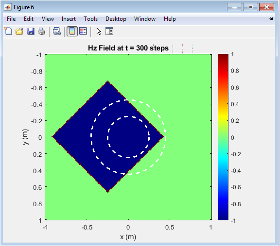 The Finite Difference Time Domain method is a powerful computational technique for solving Maxwell’s equations. It discretizes both space and time to simulate electromagnetic field evolution. The method uses central-difference approximations to compute field derivatives. Fields are updated iteratively across the computational grid. FDTD is especially suitable for complex and anisotropic materials. It allows direct visualization of transient wave behavior [15]. The time-domain approach captures both steady-state and dynamic responses. Boundary conditions can be incorporated to prevent artificial reflections. The method is widely adopted in electromagnetic research. Hence, FDTD forms the numerical backbone of this cloaking simulation.