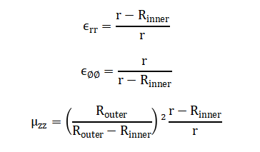 | Axial Permeability | μ_zz | (R_outer/(R_outer−R_inner))^2 × (r − R_inner)/r |