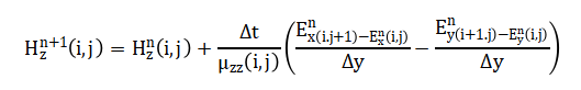 These tensors are incorporated into the FDTD update equations for the magnetic field: