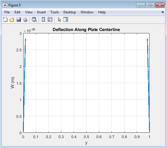 - Figure 7: Transverse Deflection along the Midline of the Plate Showing Maximum Bending at the Center.