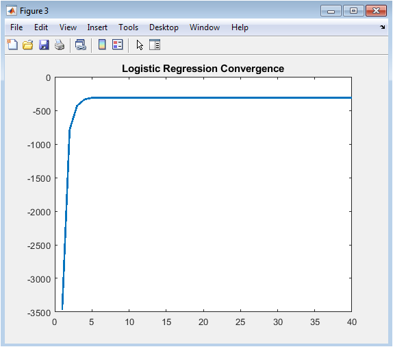This line graph tracks the maximized log-likelihood value across forty Newton-Raphson optimization iterations, providing immediate visual confirmation that the iterative estimation algorithm has successfully located the maximum likelihood solution without encountering numerical instabilities or convergence failures. The log-likelihood rises steeply during the first five to ten iterations as the coefficient vector moves rapidly from its zero initialization toward the region of high likelihood, then asymptotically approaches a stable maximum with negligible improvement beyond iteration twenty. This characteristic asymptotic convergence behavior confirms that the Hessian matrix remains positive definite throughout the optimization trajectory and that the step sizes computed via Newton-Raphson are appropriately scaled. The absence of oscillations, sudden drops, or failure to improve indicates that the logistic regression model is well-specified for the synthetic data and that no numerical issues such as singular Hessian matrices or complete separation have corrupted the estimation process. Model developers routinely examine convergence plots to diagnose optimization problems, compare algorithm performance, and establish appropriate iteration limits for production implementations. The final stabilized log-likelihood value provides a baseline against which regularized Bayesian estimates or reduced-feature models can be compared. This diagnostic transforms an abstract numerical optimization into a transparent, verifiable process accessible to quantitative reviewers.