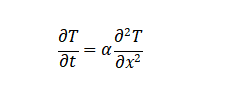 ∂T/∂t = α (∂^2 T)/(∂x^2)