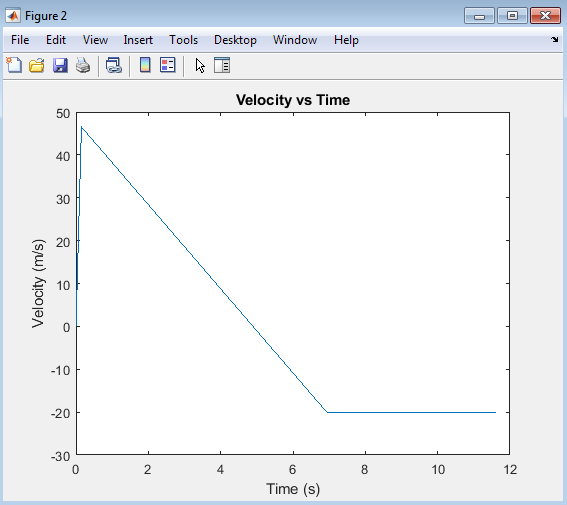 The “Velocity vs Time” plot shows the model rocket’s velocity profile over time, highlighting its acceleration and deceleration phases. During the ascent phase, the rocket’s velocity increases rapidly due to the engine’s thrust, reaching a maximum velocity. After the engine burnout, the rocket’s velocity decreases due to gravity, and once the parachute deploys, the velocity stabilizes at a constant descent rate. This plot provides insight into the rocket’s acceleration, maximum velocity, and descent characteristics, allowing for analysis of its flight dynamics and performance.