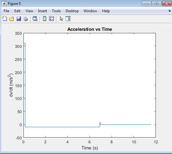 The “Acceleration vs Time” plot illustrates the model rocket’s acceleration profile over time, showcasing the changes in its acceleration during ascent, engine burnout, and descent. During the powered ascent phase, the rocket experiences a significant positive acceleration due to the engine’s thrust. After engine burnout, the acceleration becomes negative due to gravity, causing the rocket to decelerate. Once the parachute deploys, the acceleration stabilizes, and the rocket descends at a relatively constant rate. This plot provides valuable insights into the rocket’s dynamic behavior, helping to understand the effects of thrust, gravity, and drag on its motion.