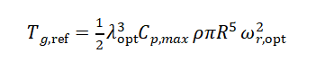 The optimal torque reference for Region II operation is derived from the condition that maximum power extraction occurs when the tip speed ratio is maintained at its optimal value λ_opt. The corresponding rotor speed is given by [29]