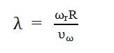 The tip speed ratio is defined as the ratio of the rotor blade tip speed to the wind speed [18]: