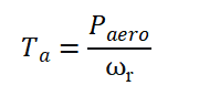 where ω_r represents the rotor angular velocity in radians per second. The aerodynamic torque acting on the rotor shaft is derived from the extracted power [19]: