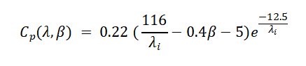 The power coefficient is a nonlinear function of both tip speed ratio and pitch angle, typically characterized by empirical models derived from blade element momentum theory. For this research, the following parametric model is employed based on standard wind turbine aerodynamic characteristics [20]