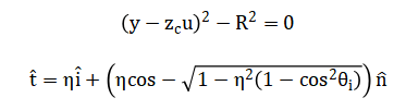 Exact ray tracing solves the sphere-intersection equation and applies Snell’s law in vector form: